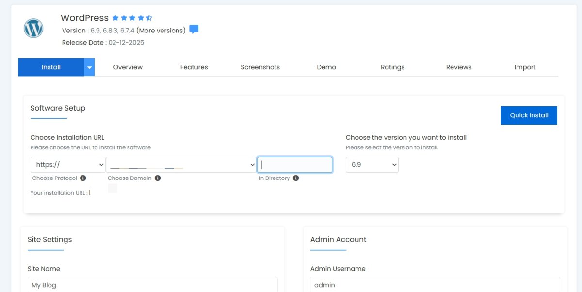 En tu hosting, instala WordPress limpio en el nuevo dominio (usa el instalador automático de cPanel > "WordPress" o Softaculous). Accede al nuevo WP en tu navegador (ej: nuevo.misitio.com/wp-admin).