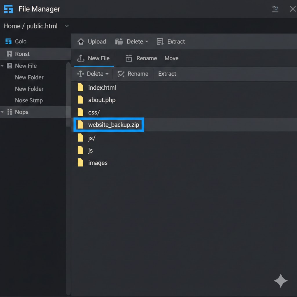 En cPanel del sitio original, ve a File Manager > public_html. Selecciona todos los archivos (Ctrl+A), comprímelos en ZIP y descárgalo. En el nuevo dominio/subdominio, sube el ZIP a public_html, extráelo y reemplaza todo.