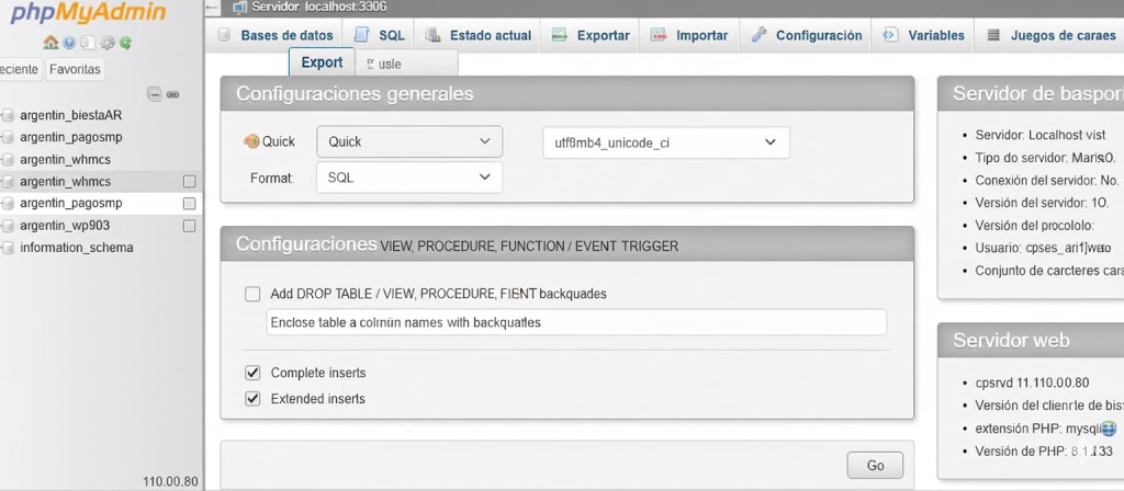 En cPanel > phpMyAdmin, selecciona tu base de datos original > Exportar (formato SQL). Crea una nueva base de datos en el nuevo dominio (cPanel > Bases de datos MySQL). En phpMyAdmin del nuevo, importa el SQL. Edita wp-config.php del nuevo sitio: cambia DB_NAME, DB_USER, DB_PASSWORD y añade:
